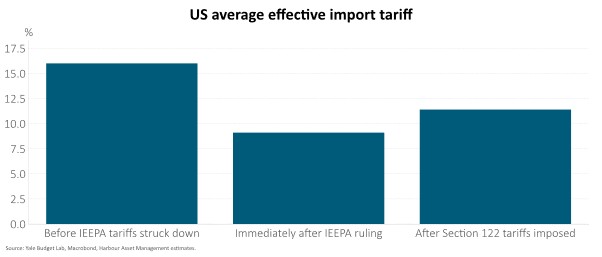 The US Administration opted to impose a 10% blanket tariff rather than the previously signalled 15% - representing a large drop in the effective tariff to 11.4% from 16% prior to the Supreme Court’s ruling.